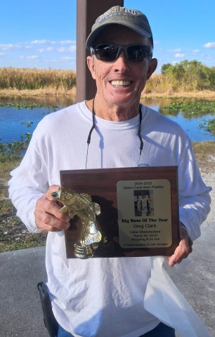 It was good to see past member Matt Byrd ( alt.) come out to fish with Erick Pickton who did very well in the standing and also old member Clyde Taylor who came to check up on his boys and talk about old times. Greg Clark also picked up his 2024-25 BIG BASS of the Year trophy ( 9.22 lbs Lake Okeechobee). Good to see you guys!