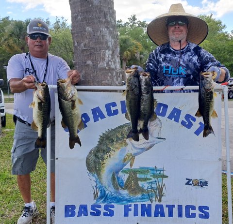 The flipped then delayed Blue Cypress tournament produced some stout numbers with high waters, high winds and club records. Twelve teams showed up in the breezy dark hours at Middleton’s Fish Camp to the seventh SCBF tournament of the season. The takeoff from the lake at 6:37 safe light had 4+ teams stay behind and fish the canals, 4+ teams head up to M-Canal & Zig Zag Canal and the other 4 teams to fish the lake. Dwayne Haga had big bass, 5.84 lbs. He had close competition with five other 5 lbs. plus fish brought to the scales. The rainy days leading up to the tournament added additional height to the St. Johns Water System. Strike Zone gift cards won by Craig Mira & Craig Eisenheimer, thank you Stike Zone for the club support. Swing down there and pick up some baits before Harris Chain tournament in a few weeks.