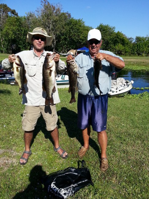 That's Mark Burt (left) and his father Jack Burt (right) with their best 4 of their 2nd place 18.67 pound stringer at Blue Cypress Lake on October 27, 2013. (Photo by Mike Calloway)