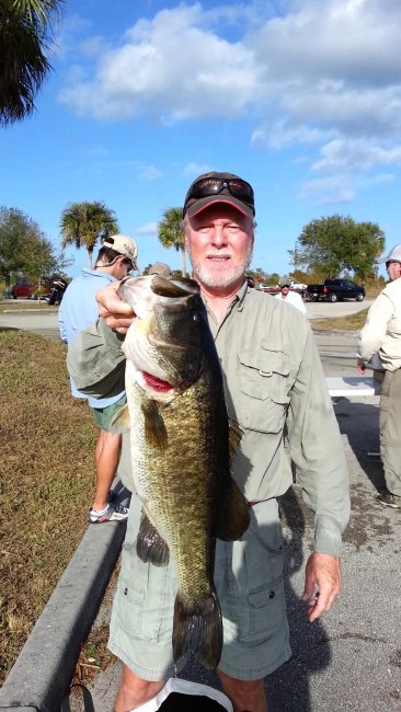 That's Mike Calloway with an 8.67 pound giant he caught flipping hyacinths at Garcia on November 17, 2013. (Photo by Cliff Semonski)