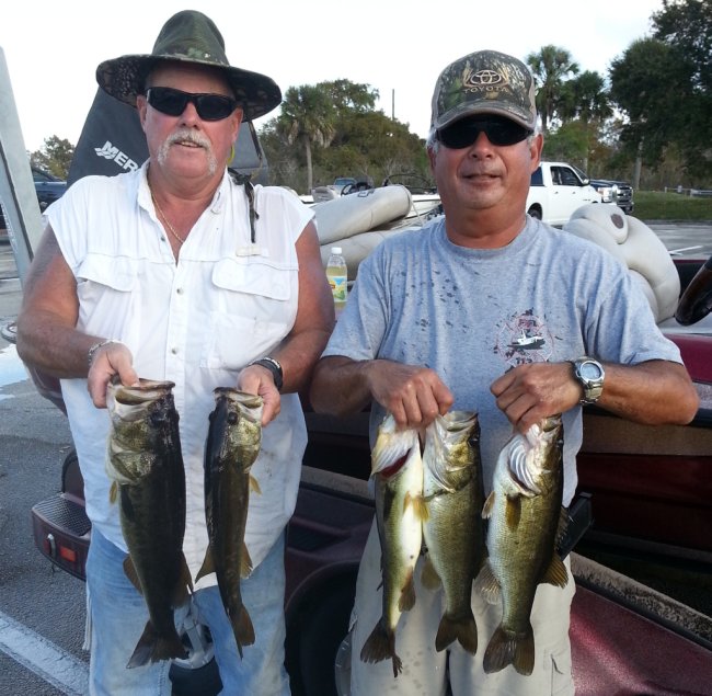 That's Wayne Smith (left) and Alan Elder (right) with 12.63 pounds of bass from Garcia on November 16, 2014. That was good enough for 5th place. (Photo by Mike Calloway)