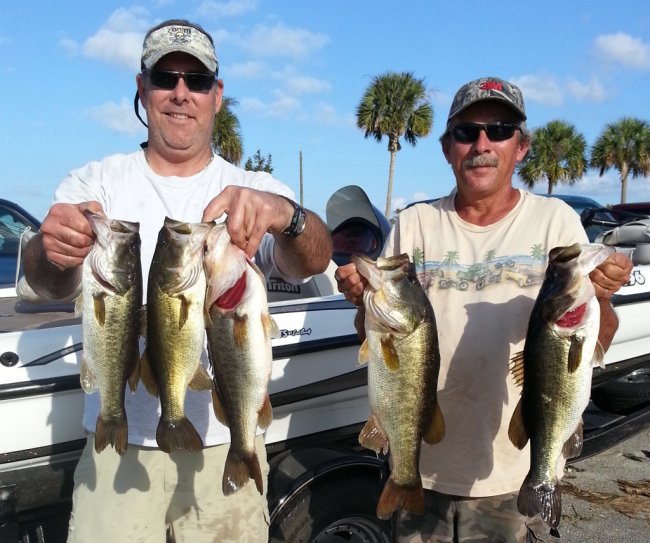 Dave Metzler (left) and Dwayne Haga (right) display 16.49 pounds of bass from Garcia earning them a 3rd place finish on November 16, 2014. (Photo by Mike Calloway)