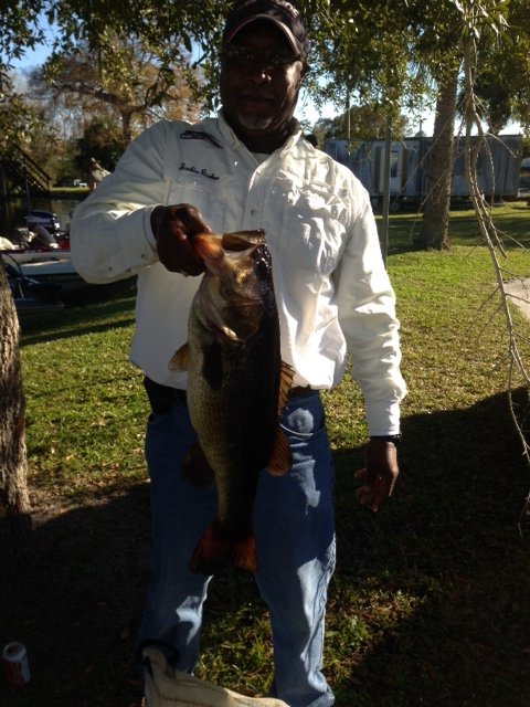 Jackie Barber shows a 6.13 pounder he caught at Blue Cypress Lake on December 14, 2014. He got beat for big bass by 2 fish over 7 pounds, but that's a nice one none the less. (Photo by Alan Elder)
