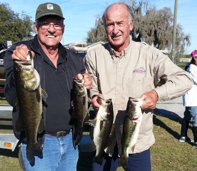 Bob Barnette (left) and Tom Southwick with 10.89 pounds of post frontal bass from West Lake Toho. They took 3rd at our January 25, 2015 tournament. Photo by Mike Calloway.