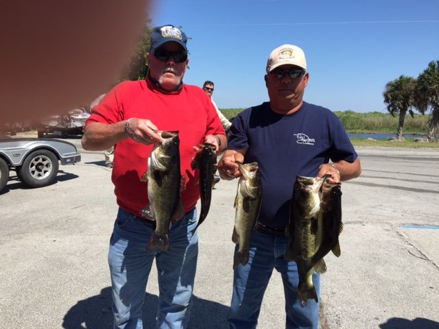 Alan Elder, Wayne Smith, and someone's finger with 14.10 pounds from day 2 of our March 28-29, 2015 tournament at Lake Okeechobee. (Photo by someone with at least one finger)