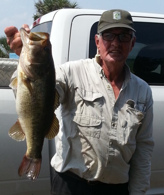 Bob Barnette and his 5.52 lunker from Lake Kissimmee on April 26, 2015. Bob was edged out for big bass, but that's a good one. (Photo by Mike Calloway)