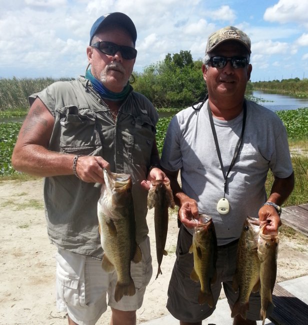 Wayne Smith (left) and Alan Elder with 12.40 pounds of Garcia bass on May 31, 2015. (Photo by Mike Calloway)