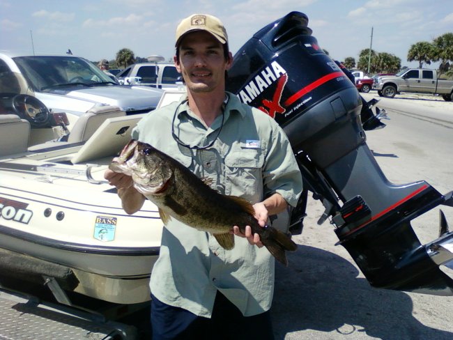 This fish was caught on a Yum Money Minnow while fishing the edge of a thick hydrilla mat in shallow clear water in Fish Eating Bay. (Photo by Mike Calloway on 03-27-2011)